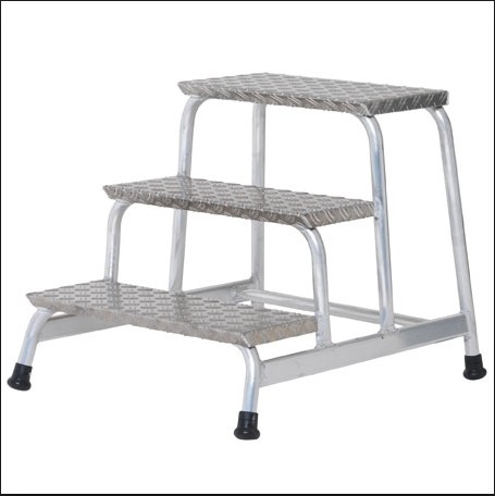 Montagetrap uit aluminium, treden voorzien van geplooide traanplaat.