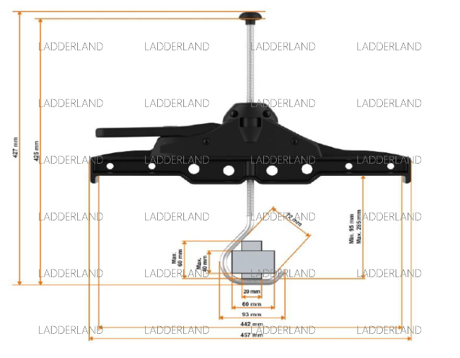 De Hippoclamp is een ladderbevestiging van composietstaven en de sjorhaak is van roestvrij staal.