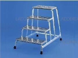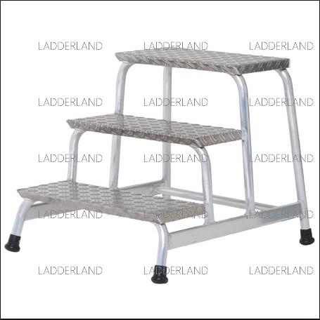 Montagetrap uit aluminium, treden voorzien van geplooide traanplaat.