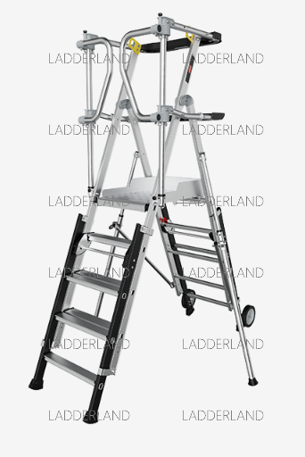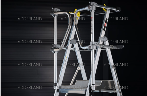 De RolGuard is een geavanceerde platformtrap. Met het extra grote platform van 60 bij 40 centimeter heb je altijd voldoende ruimte om veilig en comfortabel te staan. Dankzij het veiligheidsframe rondom geniet je altijd van 360 graden valbeveiliging en werk je veilig met de handen vrij. De stabilisator draagt daarnaast bij aan extra stabiliteit tijdens de werkzaamheden. Kortom, de perfecte combinatie van comfort en veiligheid.