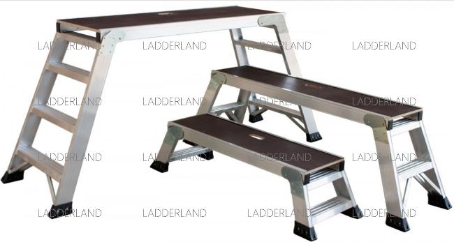 Praktisch werkplatform gemaakt in aluminium met een antislip platform in waterdicht hout.